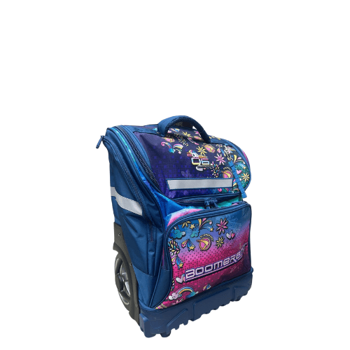 The Boomerang Extra Large School Trolley Bag with BIG Wheels is a robust schoolbag with plenty of room for all your schooling essentials. With padded straps, durable material, sturdy wheels and a extendable trolley handle. Your kid will fancy this most user friendly Boomerang school bag. Fitted with plenty of pockets inside out and a wide opening main compartment to store everything needed for the school-day ahead.