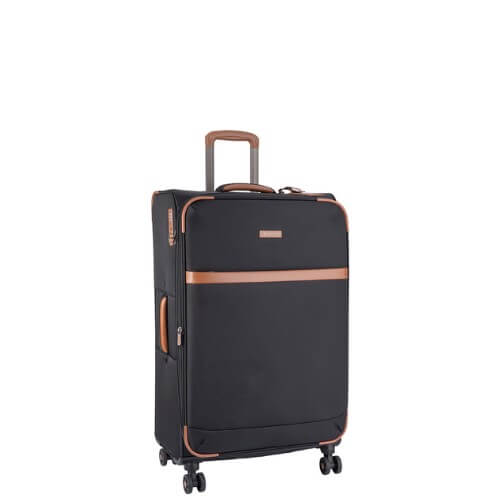 The Spacious 4-wheel Trolley Case with Xpander and an integrated TSA combination lock is the ideal travel accessory. The Cellini Monte Carlo Collection is exquisitely crafted in black with a Tan trim or in Mink with a Tan trim to create a look of timeless sophistication and style. Matching luggage tag included.