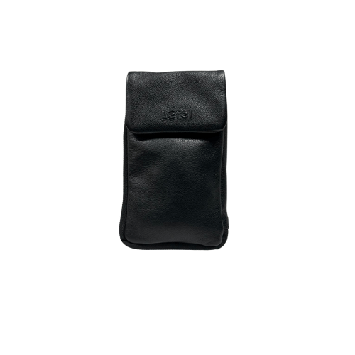 This genuine leather Lefel bag is small and compact. Purse and cell phone bag with strap. Front flap over compartment suitable for the largest cell phone. Main compartment features a slip pocket and has slots for credit cards. Zipped compartment for coins. Slip pocket outside on the back.
