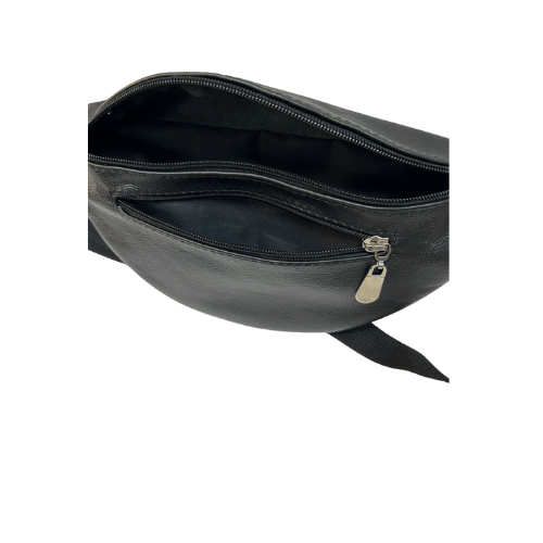 This genuine leather moonbag is an on-trend and convenient handsfree solution to carry your daily essentials. It has one main zipped compartment and additional zipped compartments in the front and back. Stylish and modern design and a great fashion accessory. Adjustable strap.