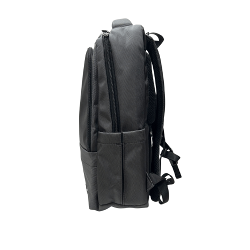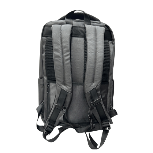 This 15” laptop backpack is easy to carry and made for comfort with padded protection for your laptop securely fastened inside. Grey with black trim.